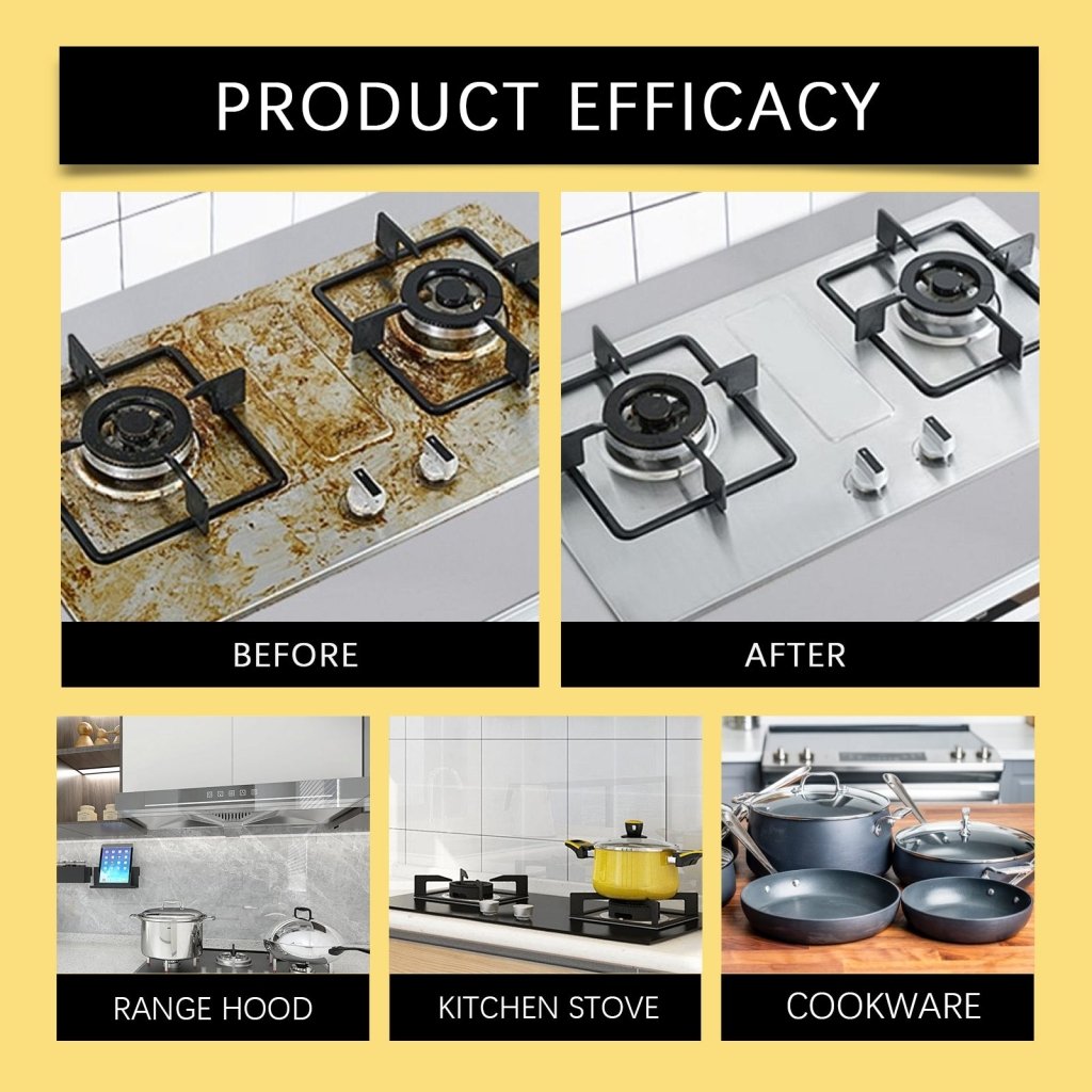 POWERFUL CLEANING FORMULA - Our cleaning spray is specially formulated to tackle tough grease and grime in your kitchen. Its powerful ingredients penetrate and break down dirt, leaving your surfaces spotless and shining like new.